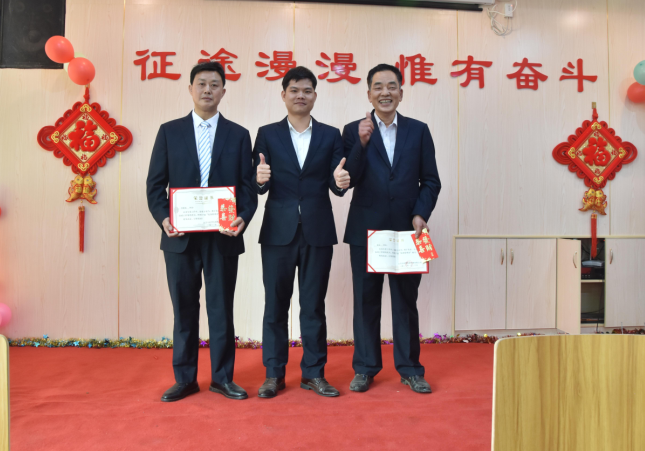 副總經(jīng)理羅永新為李開、羅執(zhí)輝、唐明階頒發(fā)技改鼓勵(lì)獎